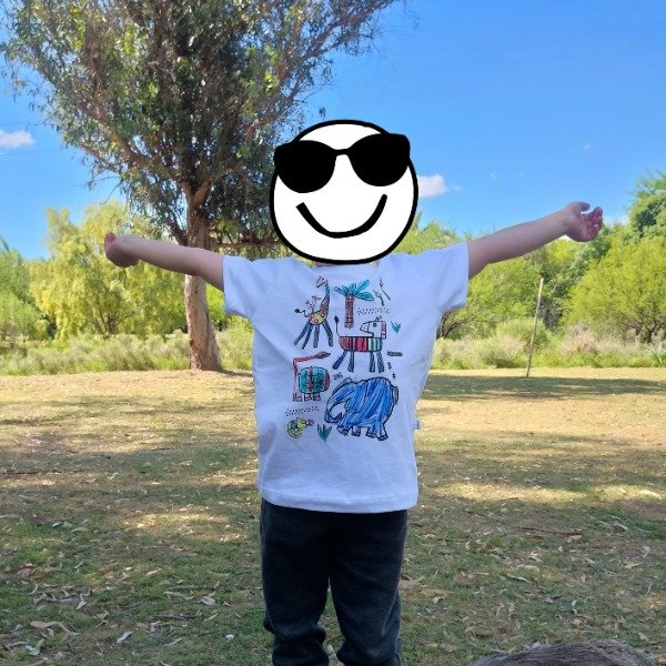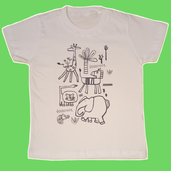 • Remera mangas cortas 100% algodón con diseño para colorear de temática SELVA.